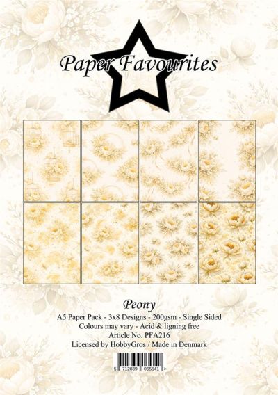 PFA216 Paper Favourites - Paperpack - Peony - A5 - 200gsm - enkelzijdig - 3x8 designs - 24vel - Bloemen/Pioenroos/Geel