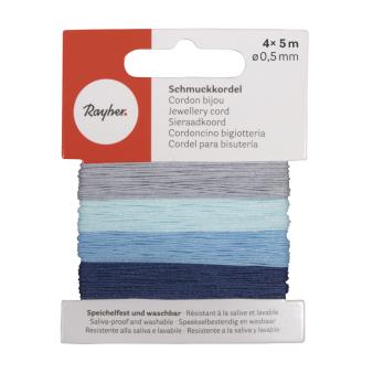 Deze veelzijdige set van Rayher bevat vier verschillende soorten koord in subtiele blauw- en grijstinten. De mix van texturen — variërend van mat tot licht glanzend — zorgt voor een professioneel en gevarieerd effect in al je creatieve projecten. Dankzij de dikte van slechts 0,5 mm is het koord uitermate geschikt voor fijn rijgwerk en subtiele knooptechnieken.
