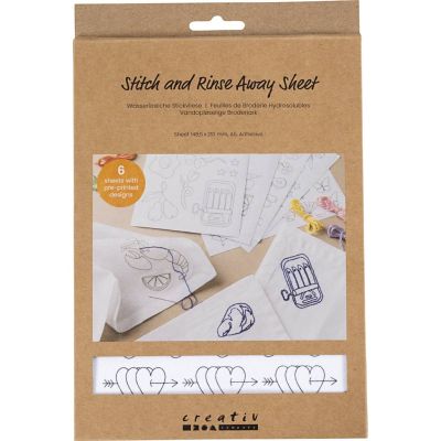 Creativ Company 219780 - Stitch and Rinse Away Sheet - Wateroplosbare borduurvellen - Decoratieve dessins - Zelfklevend - A5 - 6 vellen