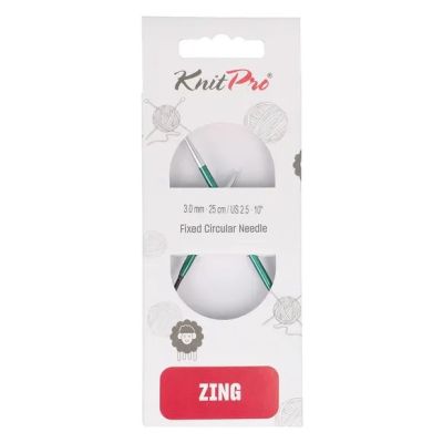 Deze Zing rondbreinaald met een vaste lengte van 25cm heeft een naalddikte van 3mm en is groen van kleur. De asymmetrische rondbreinaald heeft een lange en een korte punt, waardoor het rondbreien van weinig steken makkelijker gaat.