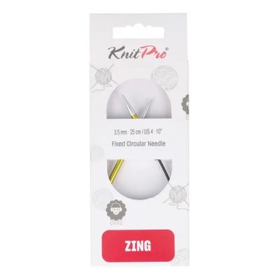 Deze Zing rondbreinaald met een vaste lengte van 25cm heeft een naalddikte van 3,5mm en is geel van kleur. De asymmetrische rondbreinaald heeft een lange en een korte punt, waardoor het rondbreien van weinig steken makkelijker gaat.