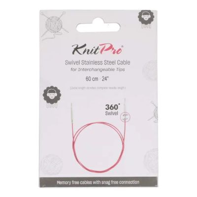 Rondbreien gaat makkelijk en soepel met deze Swivel 360° verwisselbare kabel van KnitPro. Door het Swivel 360° systeem kunnen de breinaaldpunten ongehinderd ronddraaien, wat voorkomt dat de kabel tijdens het breien gaat knikken of kronkelen. De stalen kabel is omhuld met een laagje nylon. Hierdoor is de kabel stevig, maar glijdt hij toch moeiteloos door de steken.