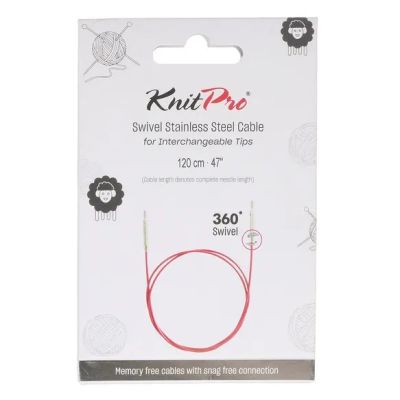 Rondbreien gaat makkelijk en soepel met deze Swivel 360° verwisselbare kabel van KnitPro. Door het Swivel 360° systeem kunnen de breinaaldpunten ongehinderd ronddraaien, wat voorkomt dat de kabel tijdens het breien gaat knikken of kronkelen. De stalen kabel is omhuld met een laagje nylon. Hierdoor is de kabel stevig, maar glijdt hij toch moeiteloos door de steken.