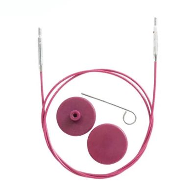 Deze kabel is te gebruiken met alle verwisselbare naaldpunten van KnitPro. Elke kabel wordt geleverd met één kabelsleuteltje en twee einddoppen. De kabel en de einddoppen zijn paars van kleur.