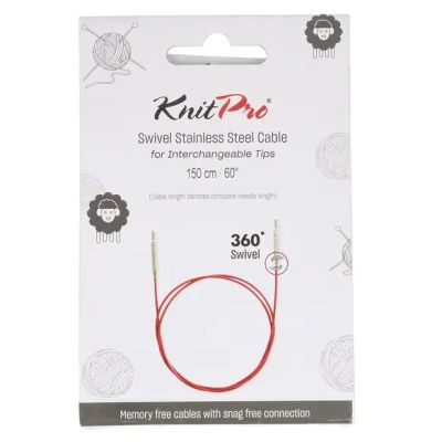 Rondbreien gaat makkelijk en soepel met deze Swivel 360° verwisselbare kabel van KnitPro. Door het Swivel 360° systeem kunnen de breinaaldpunten ongehinderd ronddraaien, wat voorkomt dat de kabel tijdens het breien gaat knikken of kronkelen. De stalen kabel is omhuld met een laagje nylon. Hierdoor is de kabel stevig, maar glijdt hij toch moeiteloos door de steken.