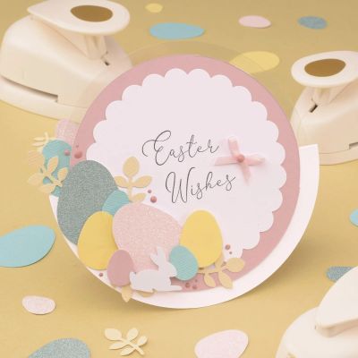 Met deze figuurpons set van Vaessen Creative stans je in één handbeweging een klein, medium of groot ei uit papier, cardstock, foto's, kurk, dun foam en meer. Figuurponsen zijn de perfecte sidekicks voor het versieren van kaarten, scrapbookpagina's, art journals, planners, labels en uitnodigingen.