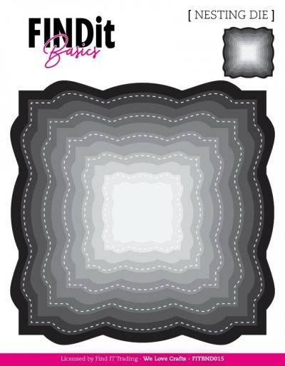 FITBND015 Find It Basics - Nesting Dies - Stitched Wavey Squares - Vierkant - 11 snijmallen - 13x13cm