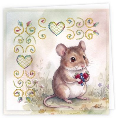 Dit handige borduursetje bevat alle materialen voor het maken van 3 vierkante kaarten in het thema Cute Mice, met muizen, vlinders, bloemen en hartjes. In deze set vind je 3 voorbedrukte wenskaarten, 3 voorgeprikte en -bedrukte oplegkaartjes, een kaartje met 3 x 50 m Stitch and Do borduurgaren, 3 enveloppen en een korte instructie. Alles in één, dus ook leuk om mee te nemen of cadeau te doen als starterssetje.