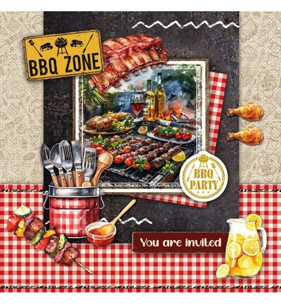 Sl-es-dcpp437 Studio Light - Essentials Collection - Die-cut Designer Paper Pad - BBQ Party - Mannen/Barbecue - 170grams - 28vel - A4