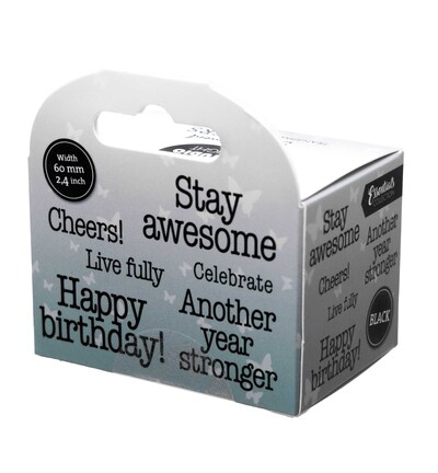 Sl-es-stic75 Studio Light - Essentials Collection - Sentiment Stickers - Another Year Stronger - Transparant/Zwart - 6 Engelse teksten - Rol 5meter - 60mm breed - Doosje 65x45x45mm