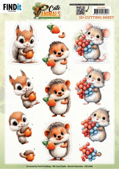 CD12448 3D Knipvel - Berrie's Beauties - Cute Animals - Forest Friends - Bosdieren - A4 - Eekhoorn/Egel/Muis