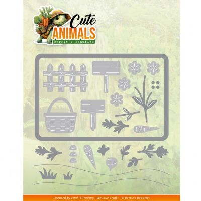 Deze snijmal Garden Scene uit de serie Cute Animals van Berrie's Beauties is te gebruiken in combinatie met alle gangbare stans- en embossingmachines.