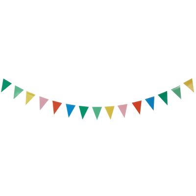 Deze mini vlaggenlijn Retro Vibes in allerlei vrolijke kleuren is perfect te gebruiken tijdens allerlei feestgelegenheden, bijvoorbeeld een verjaardag, jubileum, kinderfeestje of themafeest. De slinger is 2,6 meter lang, waarvan 2 meter met vlaggen. Er zitten 24 vlaggetjes van 7x8 cm aan. Het artikel is gemaakt van papier.