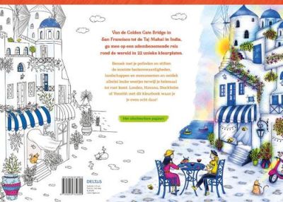 Ga mee op een adembenemende reis rond de wereld in 22 kleurplaten in dit extra grote kleurboek! Van de Golden Gate Bridge in San Francisco tot de Taj Mahal in India, bezoek met je potloden en stiften de mooiste bezienswaardigheden, landschappen en monumenten en ontdek allerlei leuke weetjes terwijl je helemaal tot rust komt. Londen, Havana, Stockholm of Venetiƫ: met dit kleurboek waan je je even echt daar! De tekeningen zijn uitscheurbaar en gedrukt op dik papier om doordrukken te voorkomen.