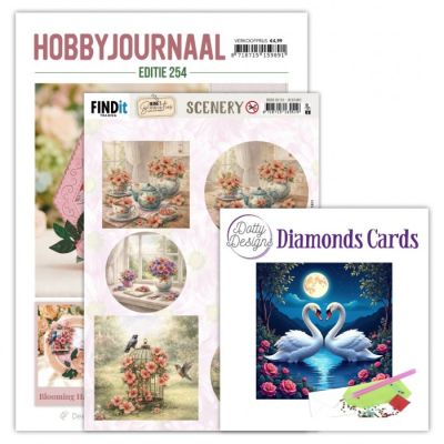 Duik in de wereld van ontspanning en creativiteit met deze exclusieve Hobbyjournaal 254 SET. Deze complete bundel combineert het nieuwste Hobbyjournaal nummer met het scenery uitdrukvel én het mooie Diamonds Cards setje Swans. Zo kun je direct aan de slag met het maken van kaarten!
